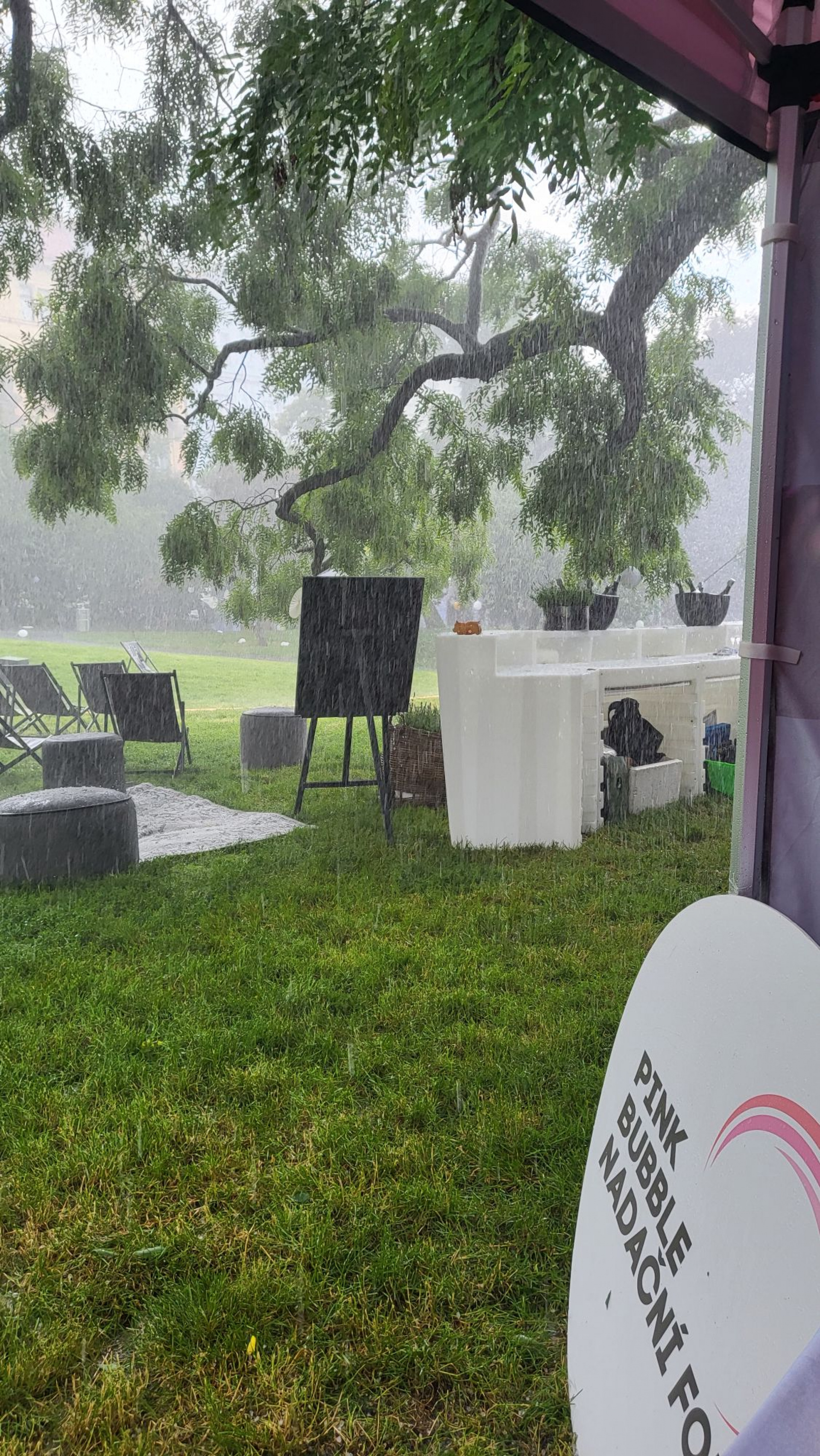 Je sice červen a léto v plném proudu, počasí ale mělo zrovna v sobotu sedmnáctého dost aprílovou náladu. Chvilku bylo slunce, chvilku provazy deště, taky vítr a dokonce i kroupy. Nic z toho naštěstí neodradilo hosty bublinkového festivalu Milujeme Prosecco, který uspořádal majitel sítě Prosekáren a náš dlouholetý podporovatel Michal Štěpánek. Ráno jsme společně s jogíny přivítali pozdravem slunce a den si zpříjemnili bublinkami a živou hudbou. Prosecco šumělo ve skleničkách, jídlo vonělo ze všech stran a spokojení hosté tančili. Chvílemi povzbuzeni sluníčkem, chvílemi mezi kapkami deště. Šek na krásných 35 tisíc korun nám předal Michal Štěpánek společně s kolegyněmi a malým psím parťákem. A my tyto peníze proměníme na radost pro naše Bublinky. Moc děkujeme za podporu i za krásný den!